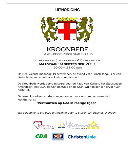 Kroonbede is een initiatief van de Raad van Kerken in Amersfoort, het Stadsgebed Amersfoort en 3 politieke partijen namelijk CDA, Christen Unie en SGP. De Kroonbede vindt plaats aan de vooravond van Prinsjesdag en het is de bedoeling voorbede te doen voor de landelijke en lokale overheid.