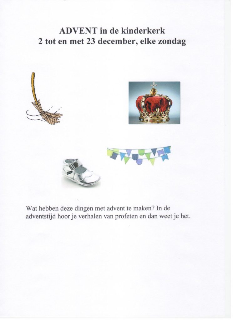 In de Advent is er iedere zondag kinderkerk, kom luisteren naar de verhalen over de profeten en er is nog veel meer……….